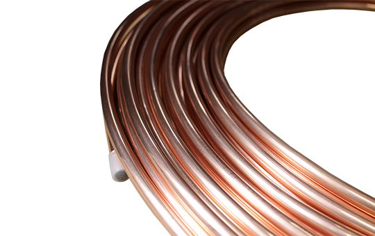 Kältekupferrohr als Ringware metrisch nach DIN EN 12735-1 weiches Kupfer R 220 innen gereingt Rohrenden luftdicht verschlossen 50m-Ring blank